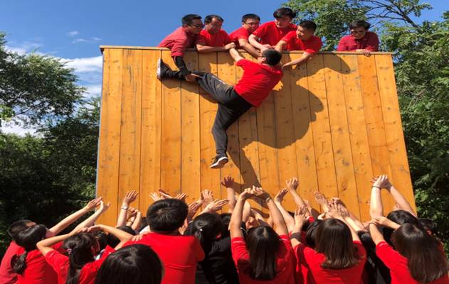 最激动人心的项目就是“毕业墙”项目了。每支队伍要在没有任何器械的帮助下翻越4米高的求生墙。很多同学挺身而出争当“底座”,积极为队伍奉献自己。在教练的耐心指导和统一指挥下,同学们勇于尝试,互相信任,同舟共济,为争取所有人翻越求生墙而竭尽全力。赛后大家主动分享经验和感悟,在掌声和欢呼声为这次拓展训练画上了完美的句号。