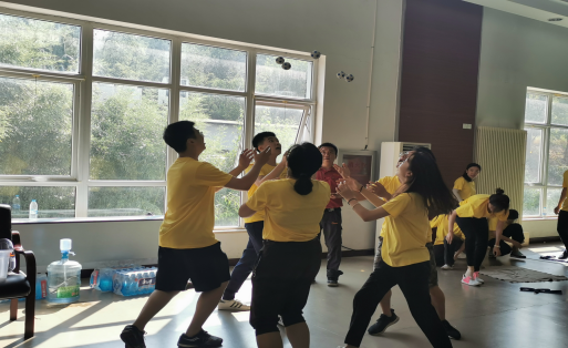 开班前,拓展老师通过几个趣味小游戏,打破了同学们之间的隔阂,建立相互信任的基础,营造了和谐的团队氛围。活动开展过程中,同学们在主持人的带领下被分成若干个小队,每个小队都由队员共同起一个队名,并设计了队徽和一句队号。在一番头脑风暴后,伴随着同学们青春活力、嘹亮的团队口号,拓展训练活动拉开了序幕。开班仪式后,训练活动正式开始。第一个活动为“极速60秒”。在游戏中,同学们分工合作,协同配合,尽自己所能为团队出谋划策展现了在面对困难和挑战时,同学团结一致不畏难、勇克难的精神。