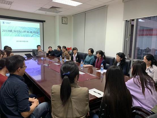 2019年10月23日下午,应经管学院牟晖副院长邀请,校就业处领导袁文靖与我院MPAcc中心2018级部分学生举行师生座谈会。MPAcc中心主任白明、副主任任晖及2018级MPAcc一班班主任赵颖秀、二班班主任宋纯子参加活动。