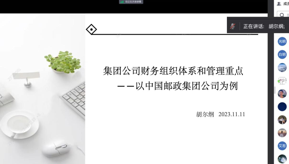 本期前沿讲堂以中国邮政集团公司为例,通过介绍集团企业的基本情况、集团总部财务部门框架及职责,分析集团公司财务组织体系和管理重点,让大家在实务层面了解了集团公司财务管理组织框架和工作内容,并为同学们进行学术研究提供了课题方向。